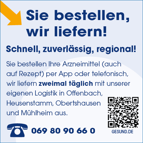 Rufen Sie an (Tel: 069 80 90 66 0) oder klicken Sie hier, um Ihre Arzneimittel vorzubestellen und direkt in der Schwanen Apotheke abzuholen.